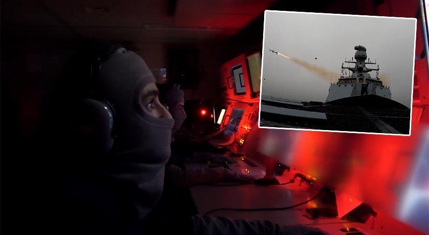 Bakanlığın sosyal medya hesabından yapılan videolu paylaşımda, “Deniz Kuvvetlerimiz, Mavi Vatan’da bir ilke daha imza attı. ATMACA güdümlü mermisi, Deniz…