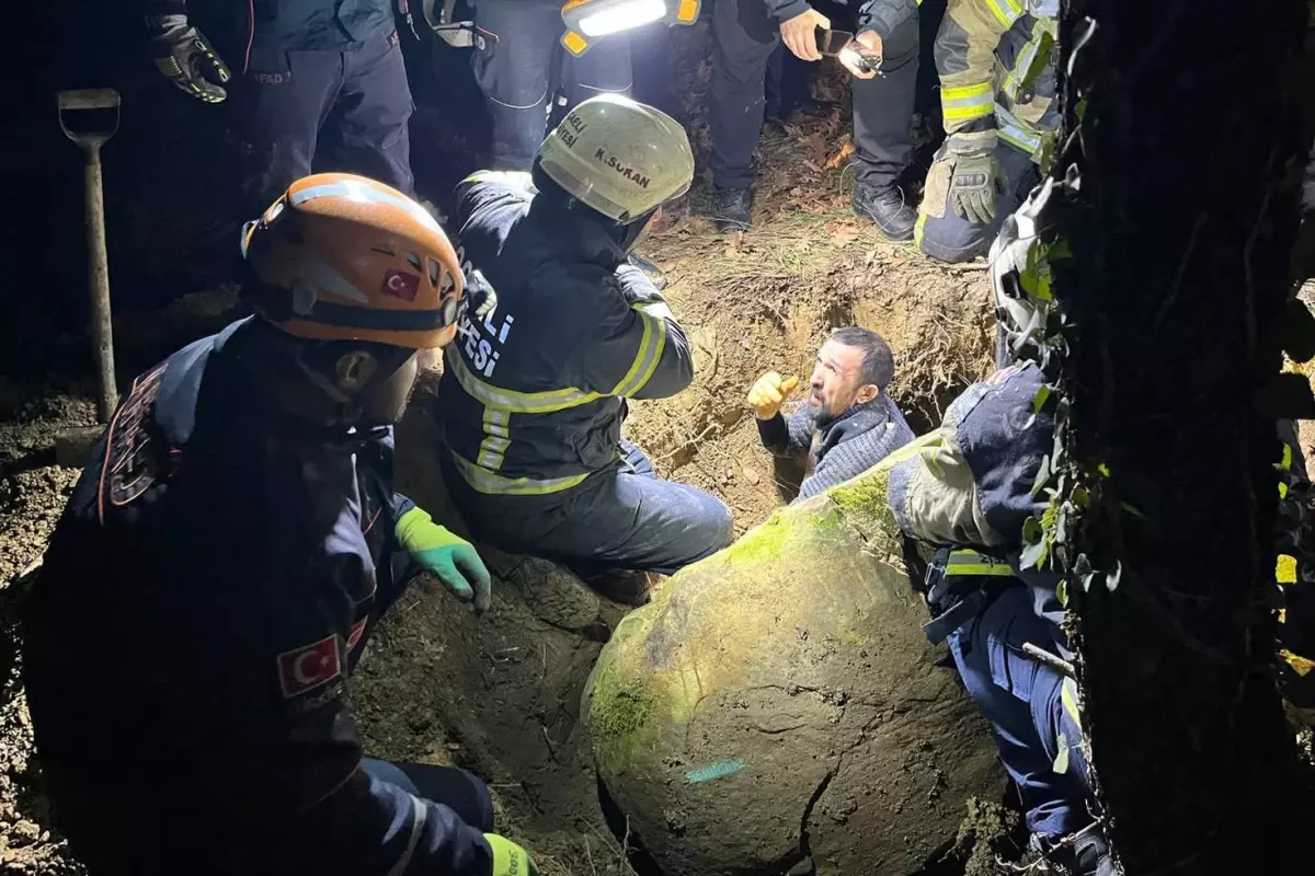 Define ararken kazdığı kayanın altında sıkıştı